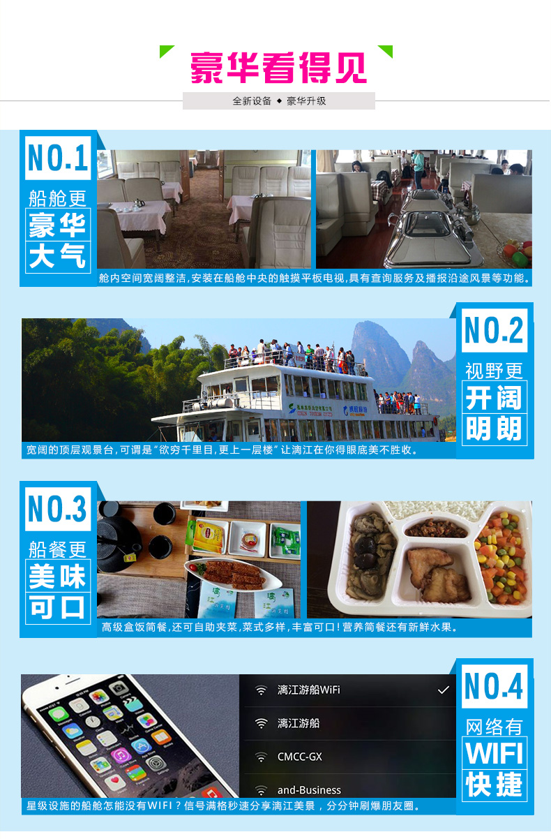 ★乘漓江豪华三星船(含中式套餐),饱览漓江精华全景。